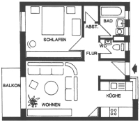 2-Raum-Wohnung, 48,6 m², Balkon, Lift, Bad mit Wanne, separates WC.
