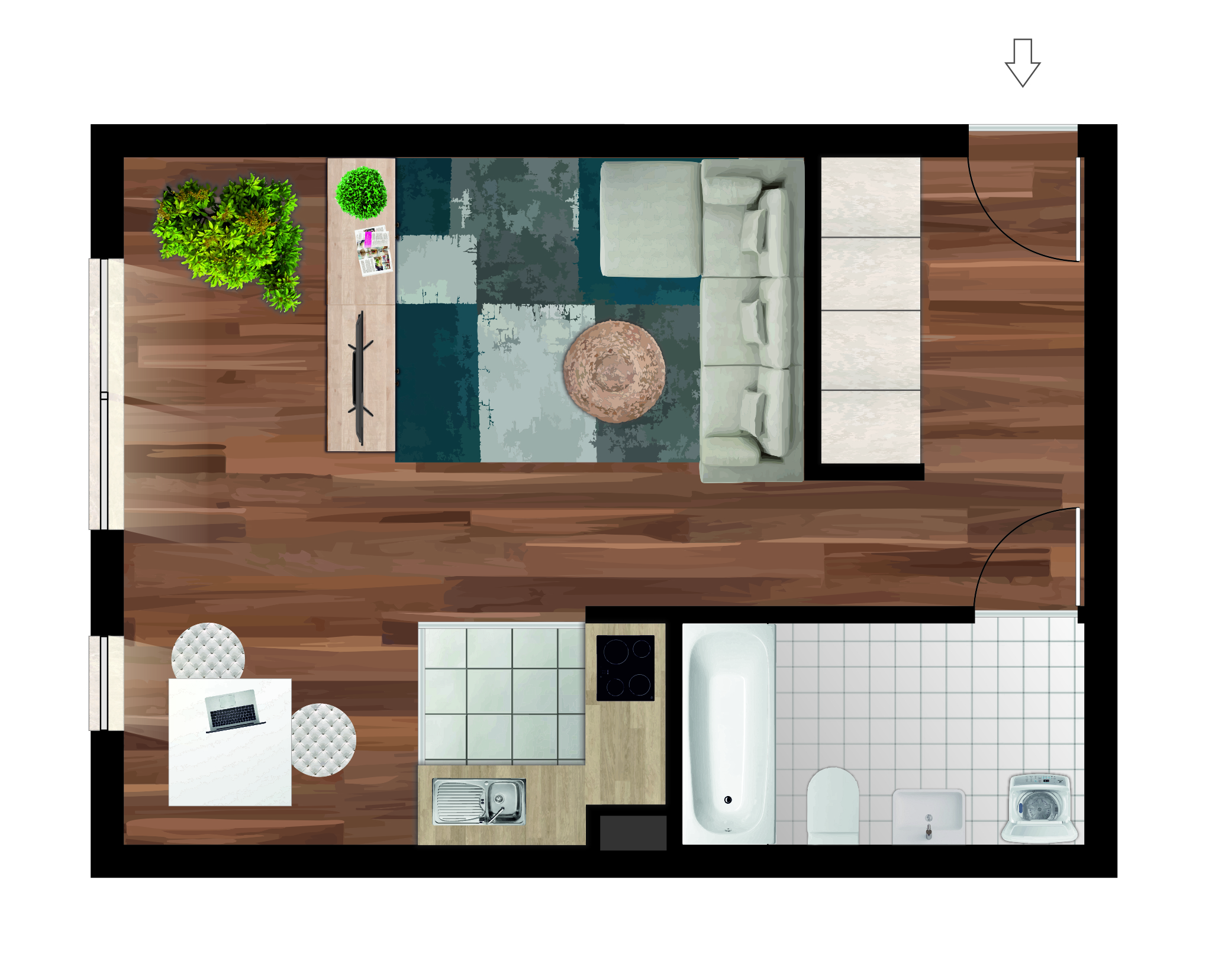 1-Raum-Wohnung, 31,1 m², Lift, Bad mit Wanne, Kfz-Stellplatz möglich.