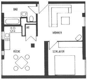 1-Raum-Wohnung in sehr ruhiger Lage. Die Wohnung ist mit Fußbodenheizung und Balkon ausgestattet. Ideal für Singles! Ein Pkw-Stallplatz kann angemietet werden.